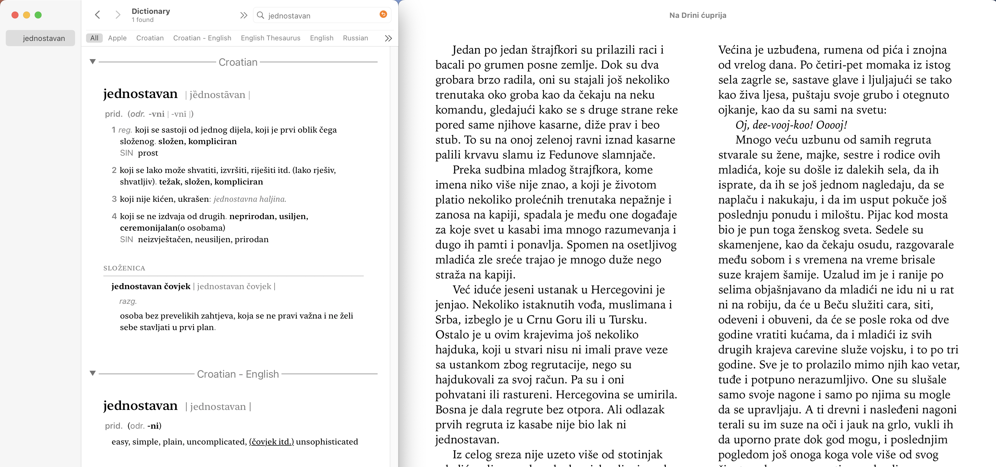 MacOS dictionary app works great. You can select dictionaries you want to use, order in which translations appear, and it updates as you type. It doesn’t need internet connection, and dictionaries quality is great. There is no Serbian dictionary, but there is a Croatian thesaurus and Croatian-English and back, which is good enough, at least for learning purposes.